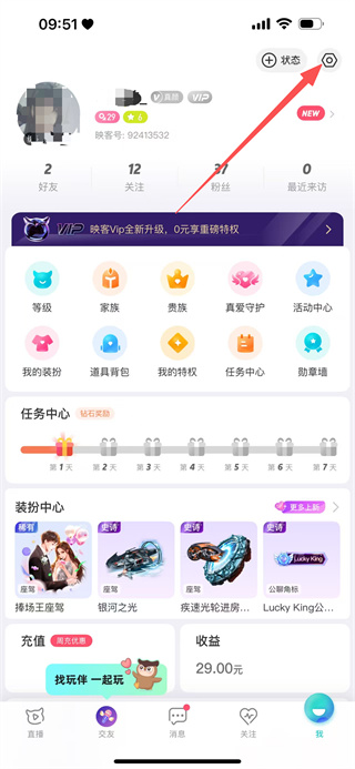 2、在個人頁面,點擊右上角設(shè)置圖標,進入設(shè)置頁面。