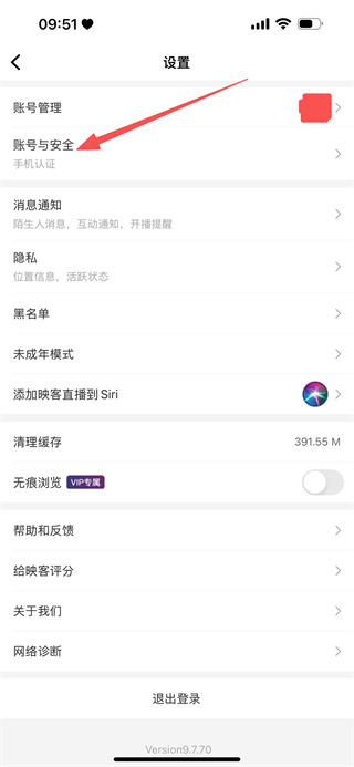 3、在設(shè)置頁面,點擊賬號與安全,進入賬號安全頁面。