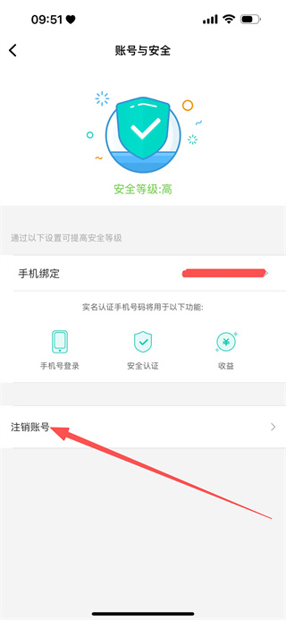 4、在賬號安全頁面,點擊注銷賬號,進入賬號注銷說明頁。
