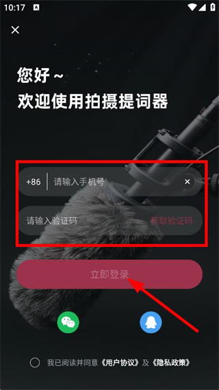 3、輸入手機號,獲取驗證碼并輸入,點擊立即登錄,完成賬號登錄操作。