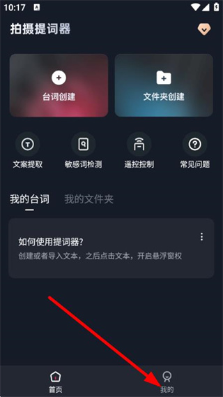 1、在拍攝提詞器首頁,點擊底部我的,進入個人頁面。