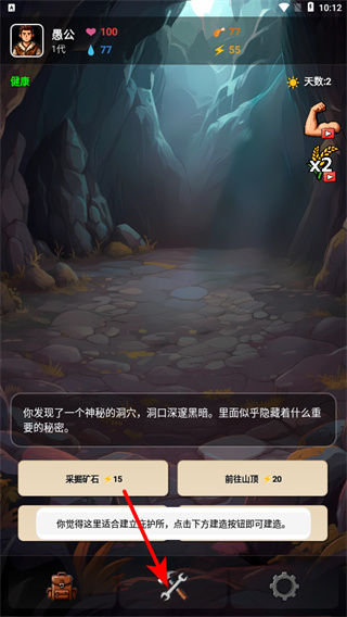 4、點擊工具按鈕進(jìn)行建筑或工具制作,制作操作是提升生存能力的重要操作,制作后可建造庇護(hù)所,為長期生存奠定基礎(chǔ)。