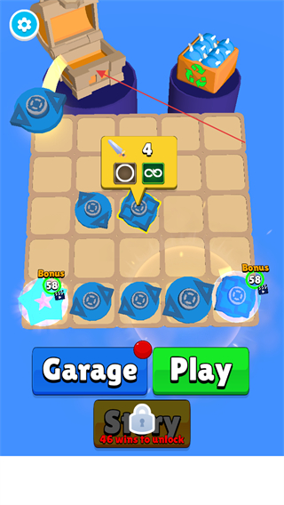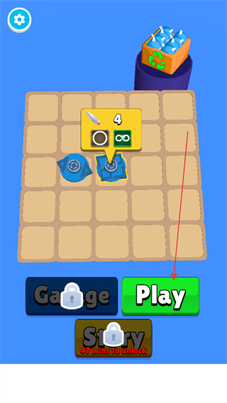 1、打開(kāi)游戲后,進(jìn)入布局界面,可以通過(guò)拖動(dòng)陀螺在方格上進(jìn)行合成與移動(dòng),點(diǎn)擊Play開(kāi)始游戲。