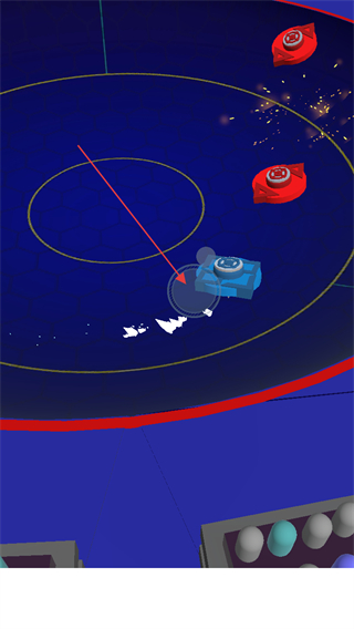 2、對(duì)局中通過(guò)劃動(dòng)屏幕空白區(qū)域控制陀螺在圓盤(pán)內(nèi)進(jìn)行移動(dòng),撞擊紅方陀螺。