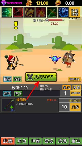 2、點(diǎn)擊挑戰(zhàn)BOSS按鈕開(kāi)啟BOSS戰(zhàn),BOSS挑戰(zhàn)是獲取高額獎(jiǎng)勵(lì)的核心步驟,挑戰(zhàn)后可獲得大量金幣和稀有道具,提升角色戰(zhàn)力。