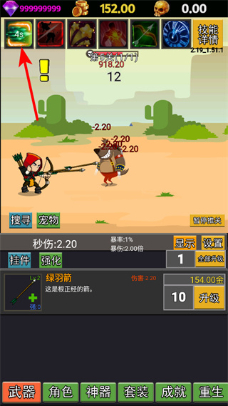 4、留意左上角技能冷卻時(shí)間,技能管理是高效戰(zhàn)斗的重要操作,冷卻結(jié)束后及時(shí)使用技能,短時(shí)間內(nèi)提升傷害輸出,應(yīng)對(duì)怪物。