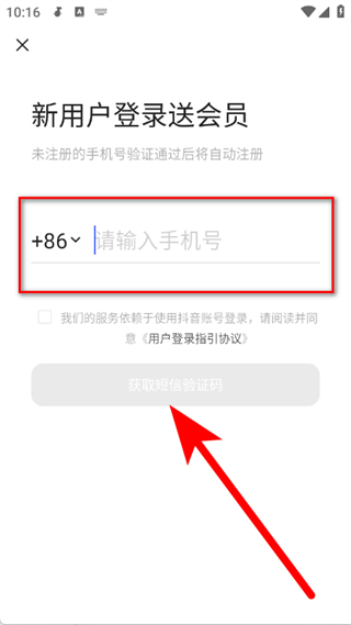 3、在新用戶(hù)登錄送會(huì)員頁(yè)面,輸入手機(jī)號(hào)后,點(diǎn)擊獲取短信驗(yàn)證碼。