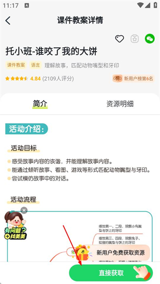 3、在課件教案詳情頁面,點擊直接獲取按鈕,進入登錄選擇頁面。