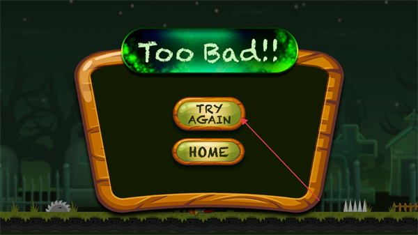 4、若僵尸碰到障礙物失敗,點擊TRYAGAIN重新開始挑戰(zhàn),爭取更好的成績。