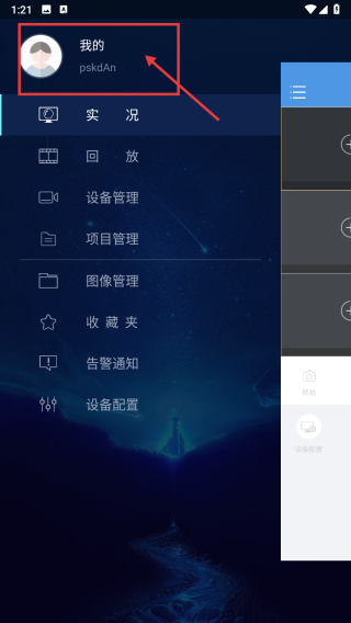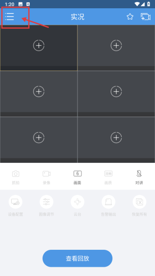 1、打開(kāi)監(jiān)控類APP,點(diǎn)擊左上角菜單按鈕,展開(kāi)功能列表。