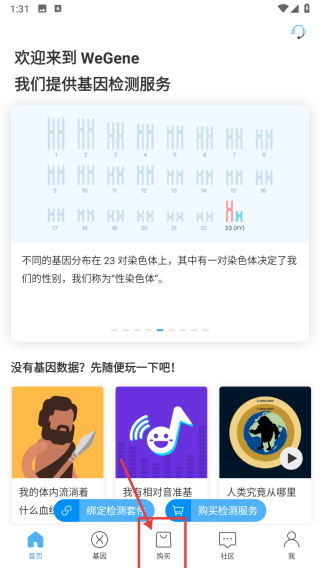 1、打開(kāi)基因檢測(cè)類APP,點(diǎn)擊底部購(gòu)買(mǎi)選項(xiàng),進(jìn)入購(gòu)買(mǎi)專區(qū)。