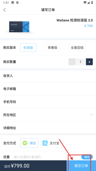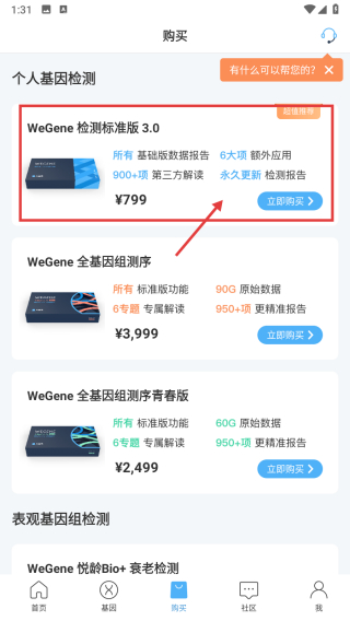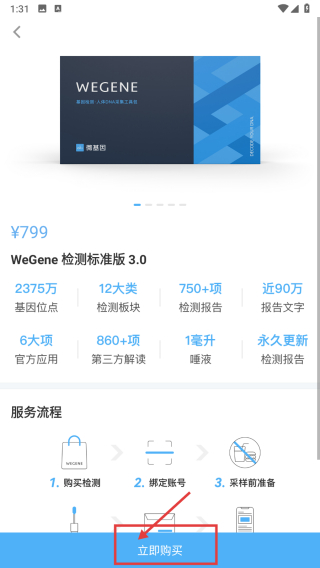 2、在購(gòu)買(mǎi)專區(qū),點(diǎn)擊WeGene檢測(cè)標(biāo)準(zhǔn)版3.0服務(wù),進(jìn)入服務(wù)詳情頁(yè)。