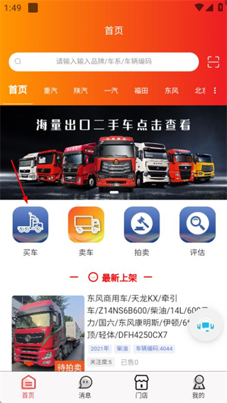1、在挑個(gè)車首頁(yè),點(diǎn)擊買車選項(xiàng),進(jìn)入車輛列表頁(yè)面。
