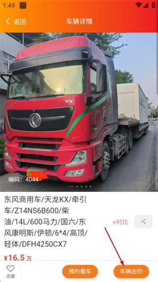3、在車輛詳情頁(yè)面,點(diǎn)擊車輛出價(jià)按鈕,進(jìn)入車輛出價(jià)頁(yè)面。