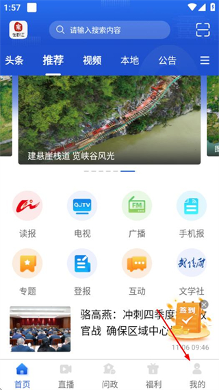 1、在家在黔江首頁,點(diǎn)擊右下角我的選項,進(jìn)入個人頁面。