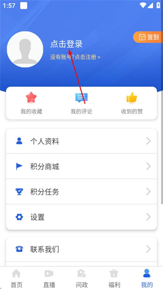 2、在個人頁面,點(diǎn)擊點(diǎn)擊登錄區(qū)域,進(jìn)入賬號登錄頁面。