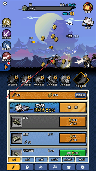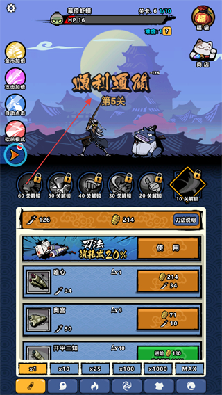 1、在戰(zhàn)斗中,點擊屏幕上的妖怪進(jìn)行攻擊,擊敗妖怪可獲得金幣和經(jīng)驗。