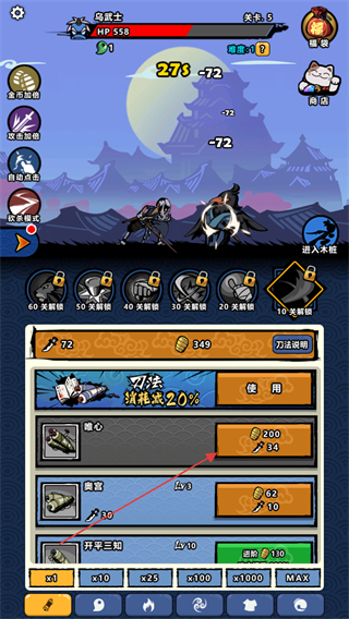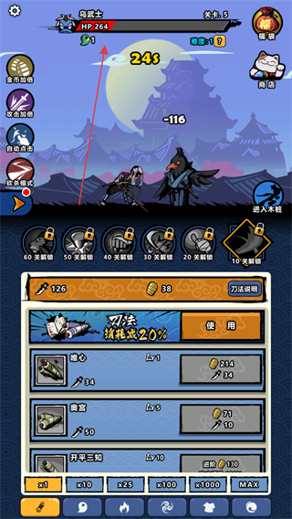 3、關(guān)注角色的生命值HP,合理分配資源升級屬性,確保能擊敗更強的妖怪。