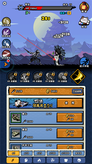 3、持續(xù)攻擊更強(qiáng)的妖怪如骨女,不斷提升角色攻擊力如5128,應(yīng)對高難度挑戰(zhàn)。