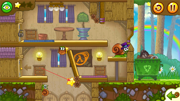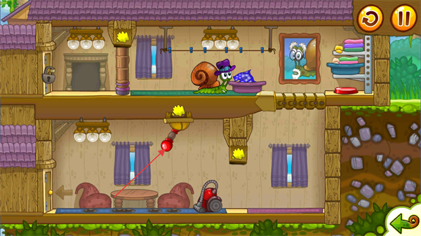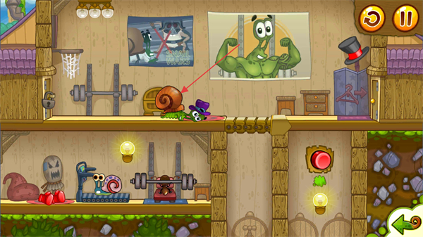 1、關(guān)卡內(nèi)當(dāng)前方有危險(xiǎn)或是沒看懂關(guān)卡怎么走之前,可以點(diǎn)擊蝸牛鮑勃讓鮑勃停在原地。