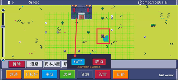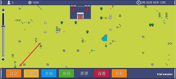 1、進入游戲場景中,根據(jù)指引點擊底部的建造選項。