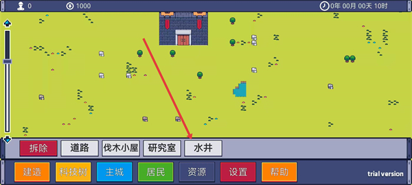 2、彈出的建造菜單之后,點擊水井選項準備建造水井。