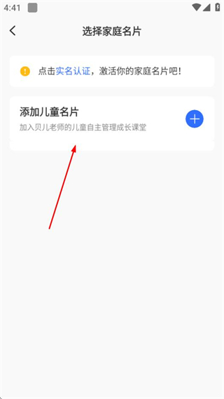 2、在選擇家庭名片頁面,點擊添加兒童名片選項,進(jìn)入新建兒童名片頁面。