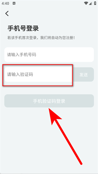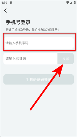 3、在手機(jī)號(hào)登錄頁面,輸入手機(jī)號(hào)碼后,點(diǎn)擊發(fā)送獲取驗(yàn)證碼。