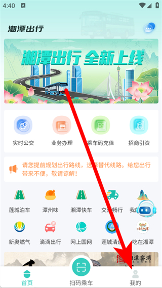 1、打開湘潭出行,點擊底部導(dǎo)航欄我的,進(jìn)入個人頁面。