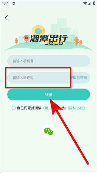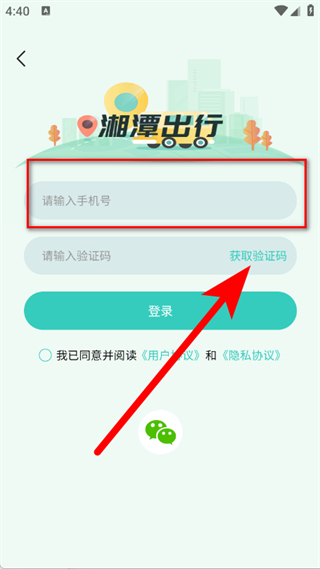 3、在登錄頁面,輸入手機(jī)號,點擊獲取驗證碼。