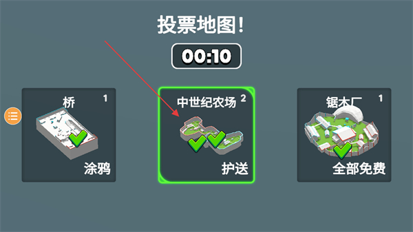 2、進(jìn)入戰(zhàn)場(chǎng)后需要所有玩家投票選擇想要游玩的地圖和玩法模式。