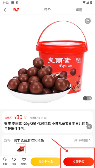 4、在商品詳情頁(yè),點(diǎn)擊立即購(gòu)買按鈕,完成該商品的購(gòu)買操作。