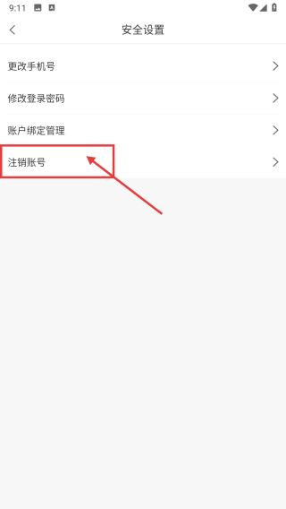 4、在安全設(shè)置頁面,點擊注銷賬號選項,完成賬號注銷操作。