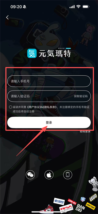 3、在手機號登錄頁面,輸入手機號和驗證碼,點擊登錄,完成登錄操作。