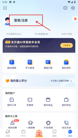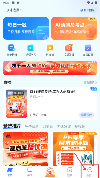 1、打開學(xué)習(xí)類APP,點(diǎn)擊底部我的選項(xiàng),進(jìn)入個人中心頁面。
