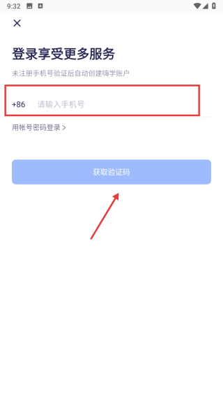 4、在手機(jī)號登錄頁面,輸入手機(jī)號,點(diǎn)擊獲取驗(yàn)證碼,輸入驗(yàn)證碼后完成賬號登錄操作。