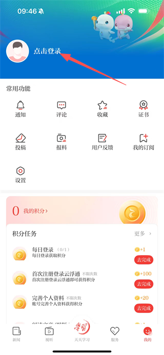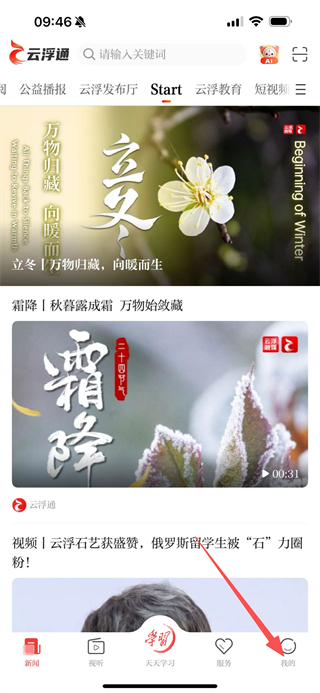 1、在新聞頁面,點(diǎn)擊底部我的,進(jìn)入個(gè)人頁面。