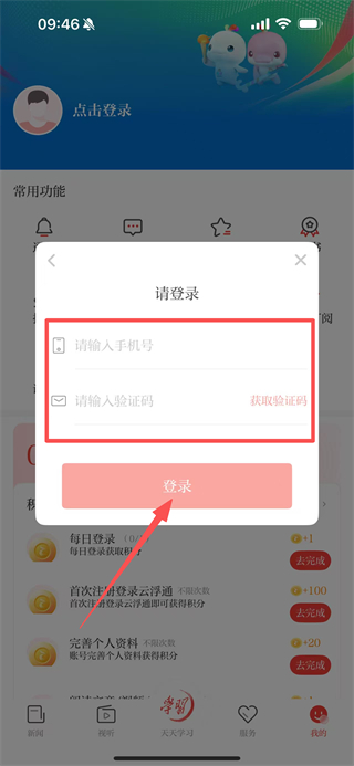 4、在手機(jī)號(hào)登錄頁面,輸入手機(jī)號(hào)和驗(yàn)證碼后點(diǎn)擊登錄,完成登錄操作。