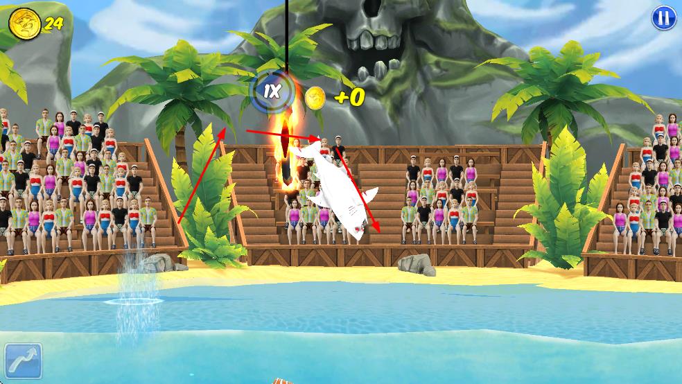2、鯊魚躍出水面攻擊沙灘人群或特殊目標(biāo),觸發(fā)金幣獎勵或特殊效果,提升破壞樂趣。