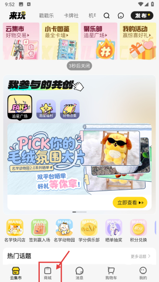 1、打開潮玩類APP,點(diǎn)擊底部商城選項(xiàng),進(jìn)入商城頁面。