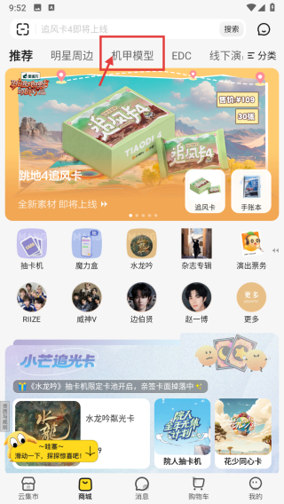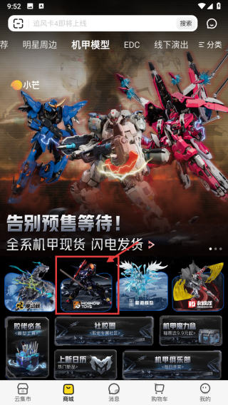 2、在商城頁面,點(diǎn)擊機(jī)甲模型分類標(biāo)簽,進(jìn)入機(jī)甲模型商品專區(qū)。