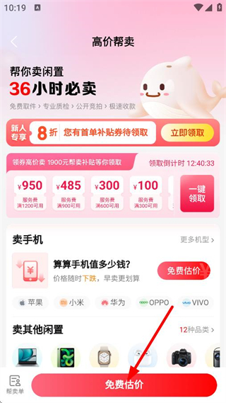 3、在高價幫賣頁面,點擊免費(fèi)估價,進(jìn)入選擇機(jī)型頁面。