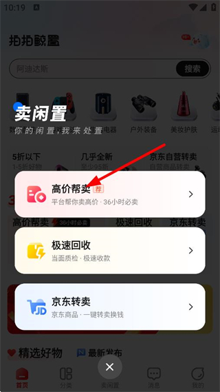 2、在賣閑置方式選擇彈窗中,點擊高價幫賣,進(jìn)入高價幫賣頁面。
