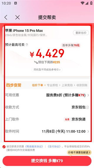 6、最后我們可查看預(yù)估售價、可用優(yōu)惠、收款方式等幫賣詳情,確認(rèn)后可提交幫賣。