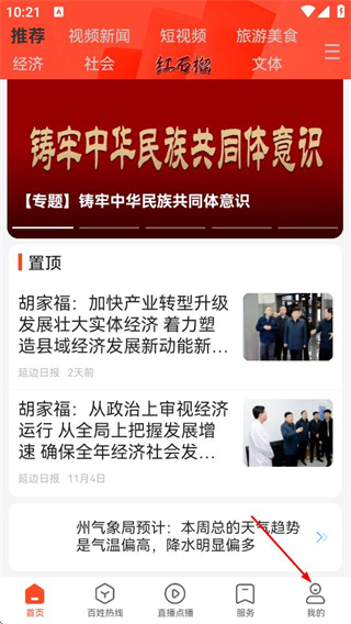 1、在延邊廣電首頁,點(diǎn)擊右下角我的選項(xiàng),進(jìn)入個(gè)人頁面。