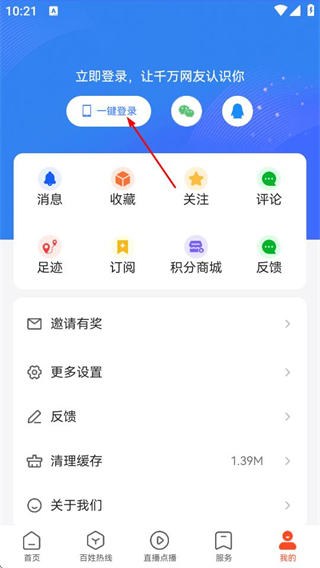 2、在個(gè)人頁面,點(diǎn)擊一鍵登錄按鈕,進(jìn)入手機(jī)號(hào)登錄頁面。