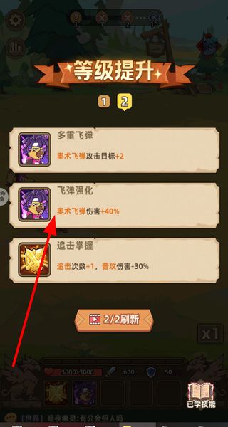 2、等級提升時(shí)選擇技能,在多重飛彈、飛彈強(qiáng)化、追擊掌握等技能中挑選,提升角色戰(zhàn)斗力。