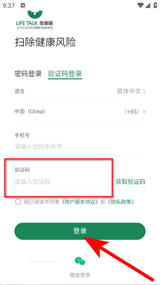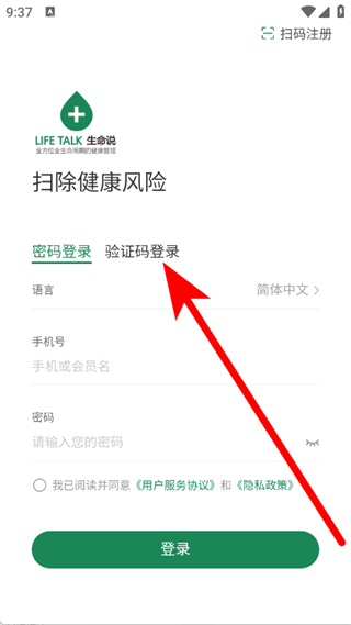 2、在登錄界面,選擇驗證碼登錄方式,進入頁面。