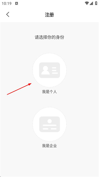 3、在注冊選擇界面點擊我是個人,進入個人注冊信息填寫界面。