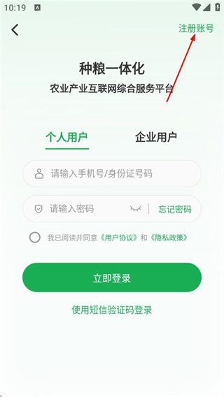 2、在登錄界面點擊注冊賬號,進入注冊選擇界面。